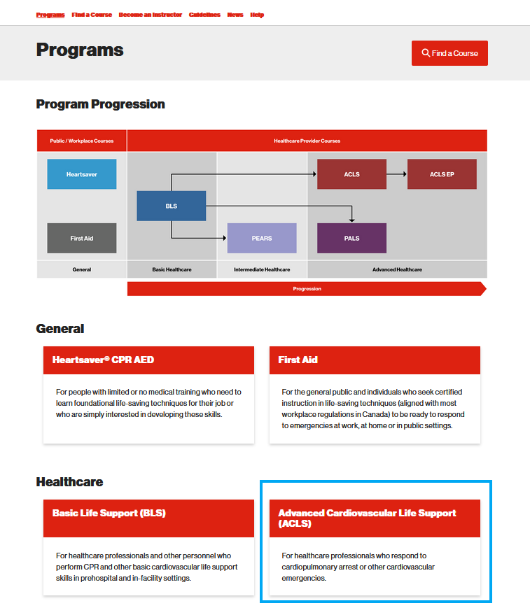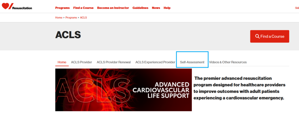 3. Scroll down to the ACLS Blended Online course and click “Launch Course”